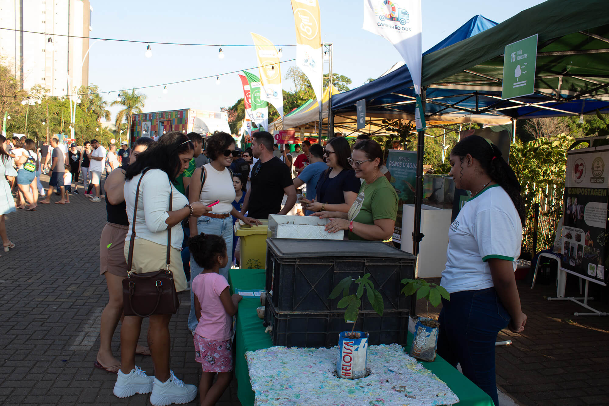 Em Lucas do Rio Verde, o projeto envolveu 1.997 alunos de três escolas municipais em atividades educativas sobre os ODS. Na Praça Florais dos Buritis, o Caminhão ODS, as tendas e o palco receberam 4.887 visitantes, com oficinas, serviços e apresentações culturais. A cidade contou com a contratação de 32 profissionais locais e o apoio de 13 parceiros.